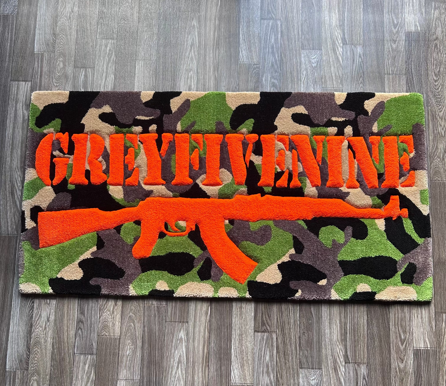 1 of 1 Camo GreyFiveNine Ak-47 Rug. Backed with Non-Slip backing, this rug is guaranteed to last a lifetime and grab the attention of anyone who steps into your room!